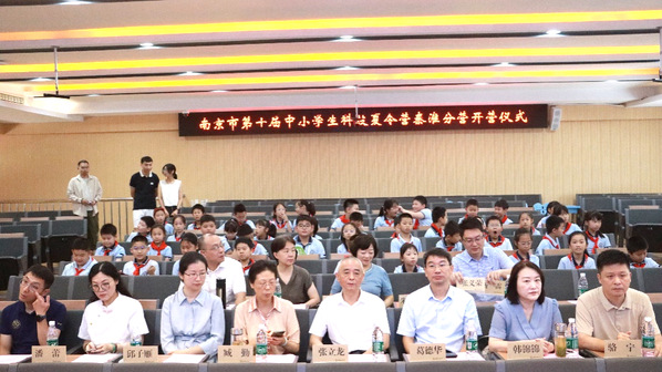 开营仪式上,秦淮区教育局副局长韩锦锦寄语全体营员:“要在研学中用心感受科技力量,用智慧探索科技奥秘,争做有科学梦想、有实践能力的时代新人。”秦淮区关工委常务副主任张立龙勉励同学们在科技海洋中尽情遨游、学有所获,宣布本次科技夏令营活动正式拉开帷幕。