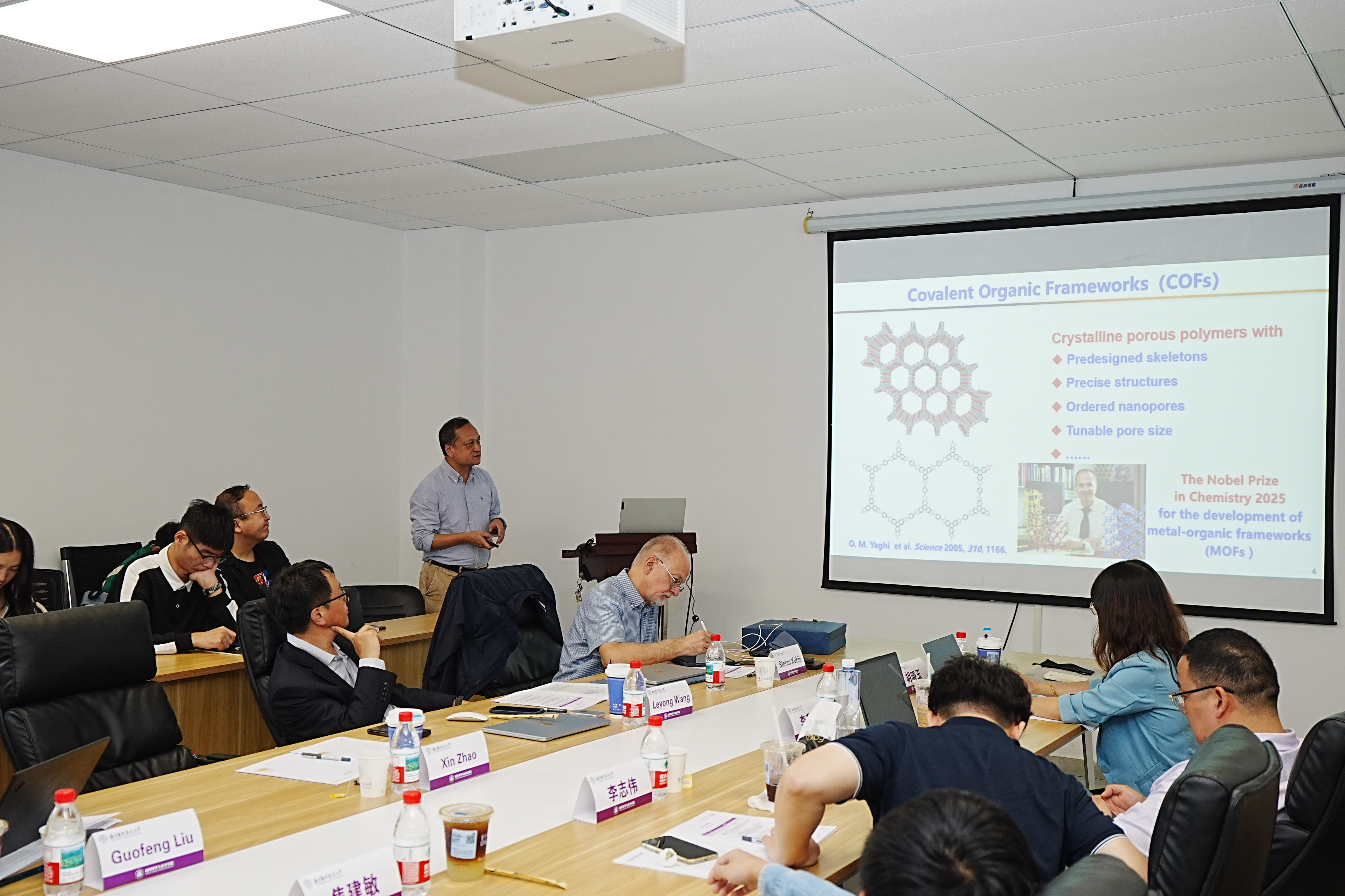 在学术报告环节,中德两国专家学者围绕超分子组装的调控机制、功能材料的精准构筑等核心议题展开了深入交流,系统分享了各自领域的最新研究成果,现场学术氛围浓厚。德国凯泽斯劳滕大学Stefan Kubik教授系统阐述了环肽分子在超分子识别中的创新性应用,其前沿研究引发了与会者的热烈讨论与深度互动。南京大学王乐勇教授详细介绍了具有空腔内活性结合位点的功能性大环芳烃在分子识别与催化反应中的潜在应用价值,为新型超分子功能材料的设计提供了重要思路;东南大学赵新教授则聚焦于共价有机框架材料的高效合成策略及其在储能与分离领域的实际应用前景,研究成果展现出显著的产业化潜力。此外,同济大学刘国锋教授、南通大学李升可教授、jojo漫画 王开亚副教授,以及江西师范大学青年教师李志伟、焦建敏、田雪琪等分别就超分子手性调控、新型芳烃合成方法、超分子纳米反应器构建等前沿方向作了专题报告,进一步拓展了会议的学术广度与研究深度。