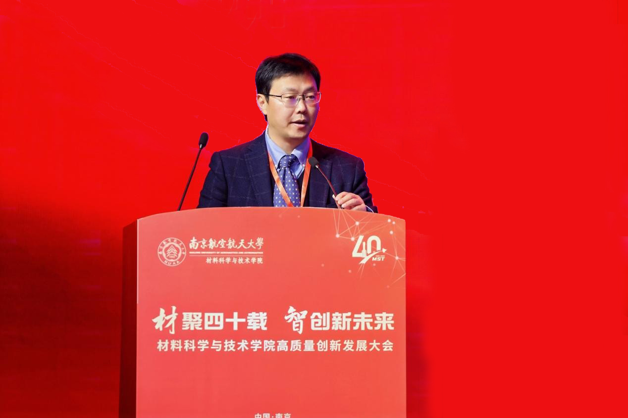 陈亚楠代表中国材料研究学会致辞,他肯定了学院建院40年以来在人才培养、科研攻关、平台建设等方面的突出成绩及服务国家战略的责任担当,期待双方聚焦“卡脖子”问题、深化学科交叉与合作,携手助力材料强国建设。