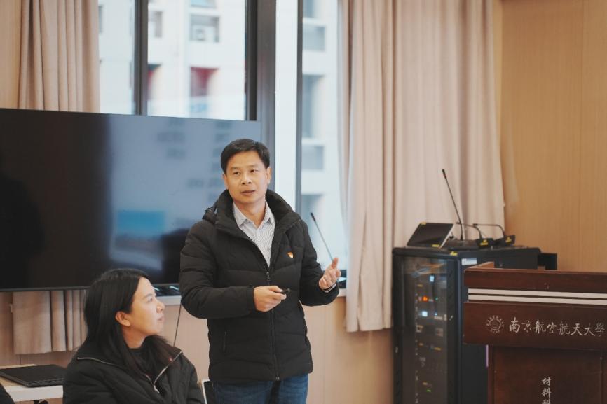 随后,姚小泉教授带领全体参会人员集体学习了党的二十届四中全会精神,因地制宜发展新质生产力,强调高校教师应自觉将党的最新理论成果融入教学科研,筑牢思想根基,勇担时代使命。南航材料学院院长顾冬冬教授介绍了学院近年来的发展成效与未来规划,江西师大化学与材料学院副院长卢章辉教授也系统分享了该院在学科建设、人才培养等方面的进展与展望。